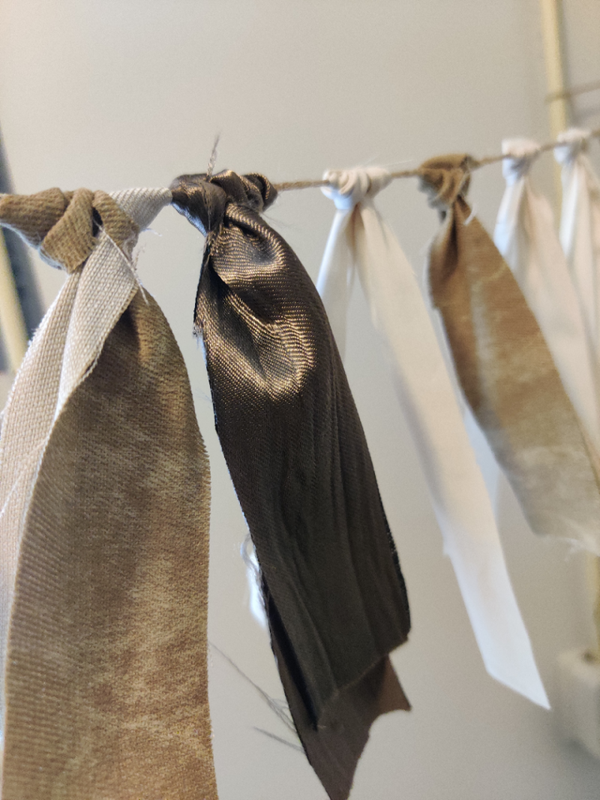 Ze zijn handgemaakt, en worden gemaakt van gerecycelde materialen, dus elke slinger is uniek en bijzonder het is maar net welke stofjes ik vind.